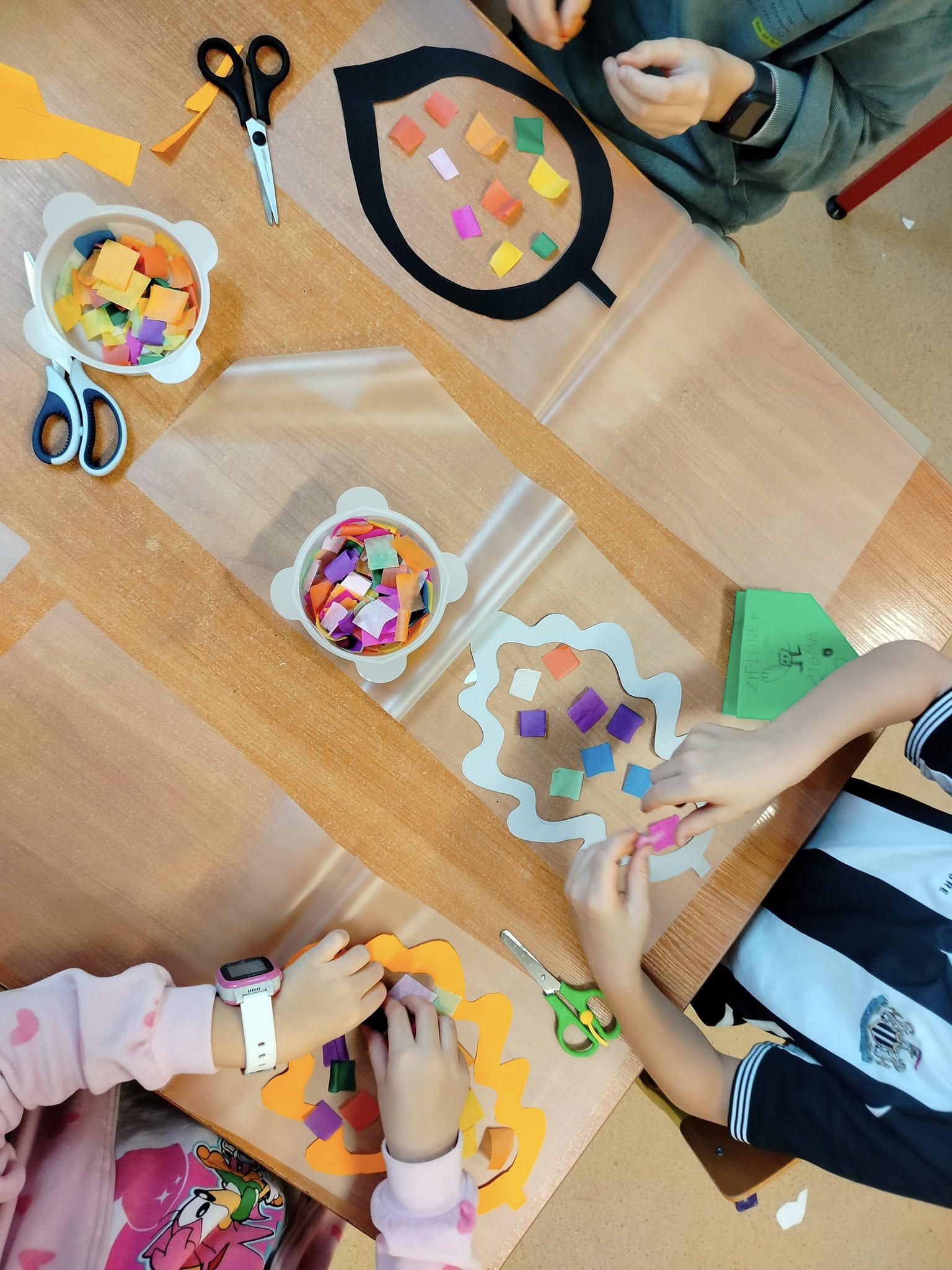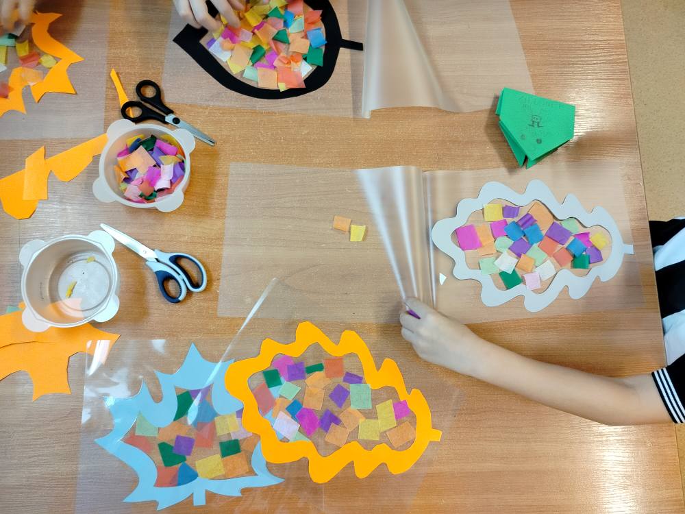 Uczniowie wykonali jesienne witrażowe liście, które ozdobiły okna naszej szkoły.