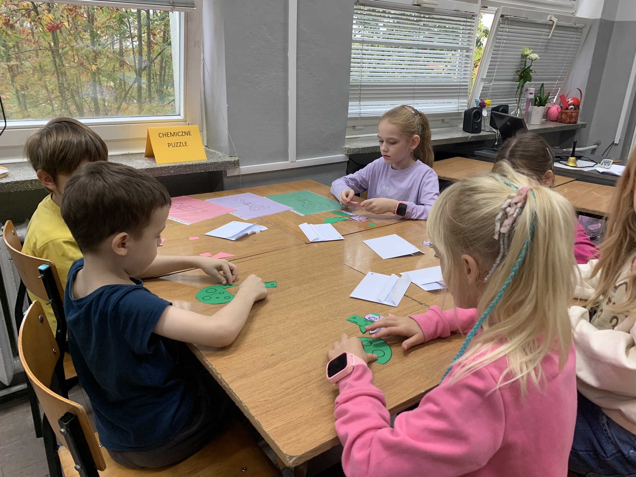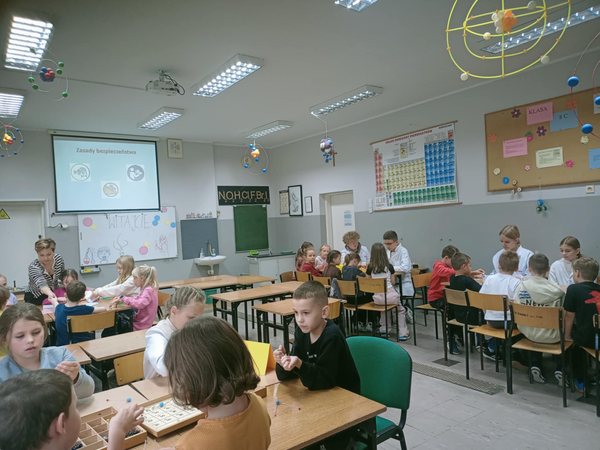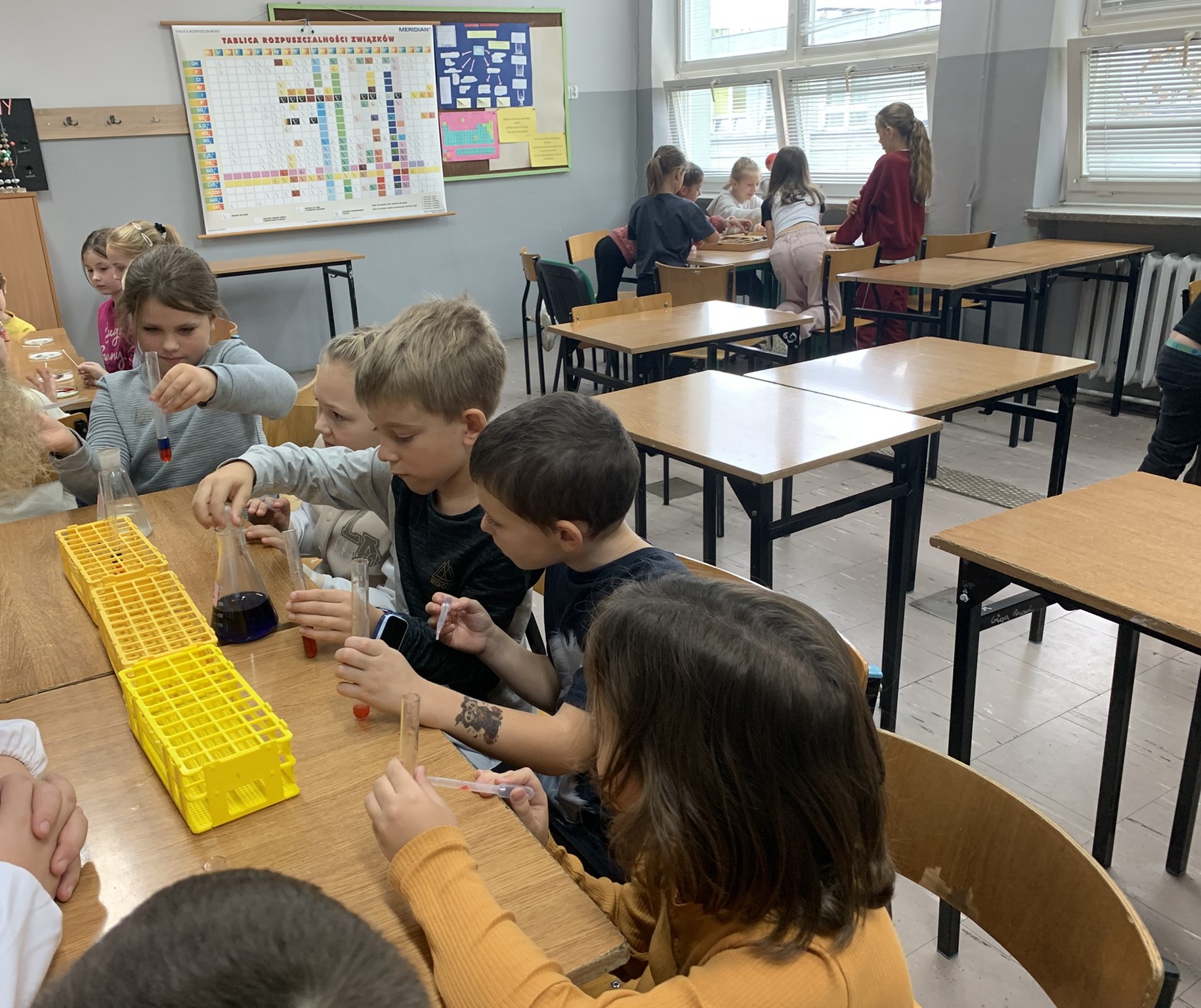 16 października salę chemiczną odwiedziła klasa 2b. Uczniowie, pod czujnym okiem starszych koleżanek i kolegów, mieli okazję samodzielnie wykonać ciekawe doświadczenia. Były także gry edukacyjne i zabawy, które w przystępny sposób przybliżyły młodszym uczniom podstawowe zagadnienia z tej dziedziny nauki.
