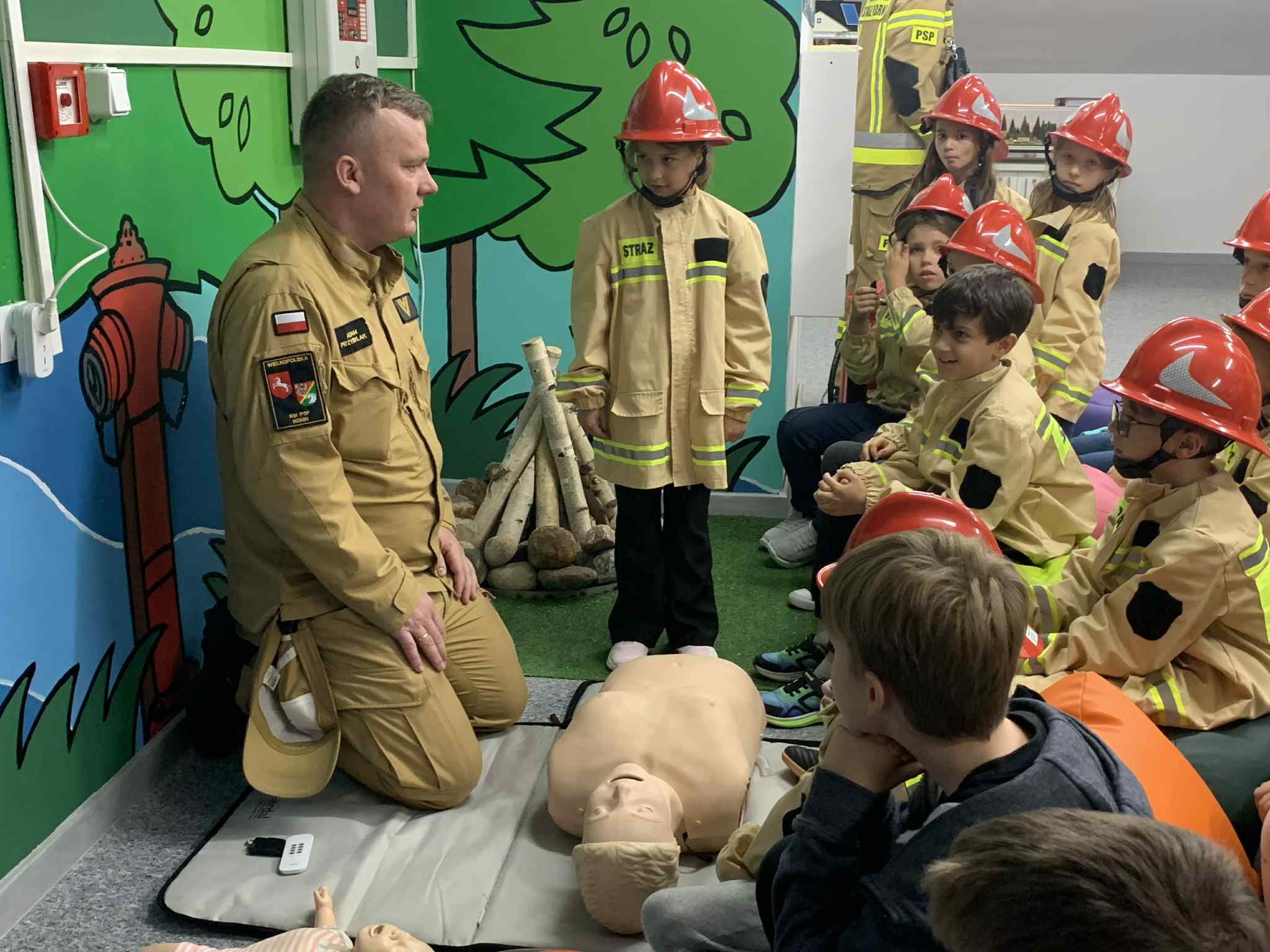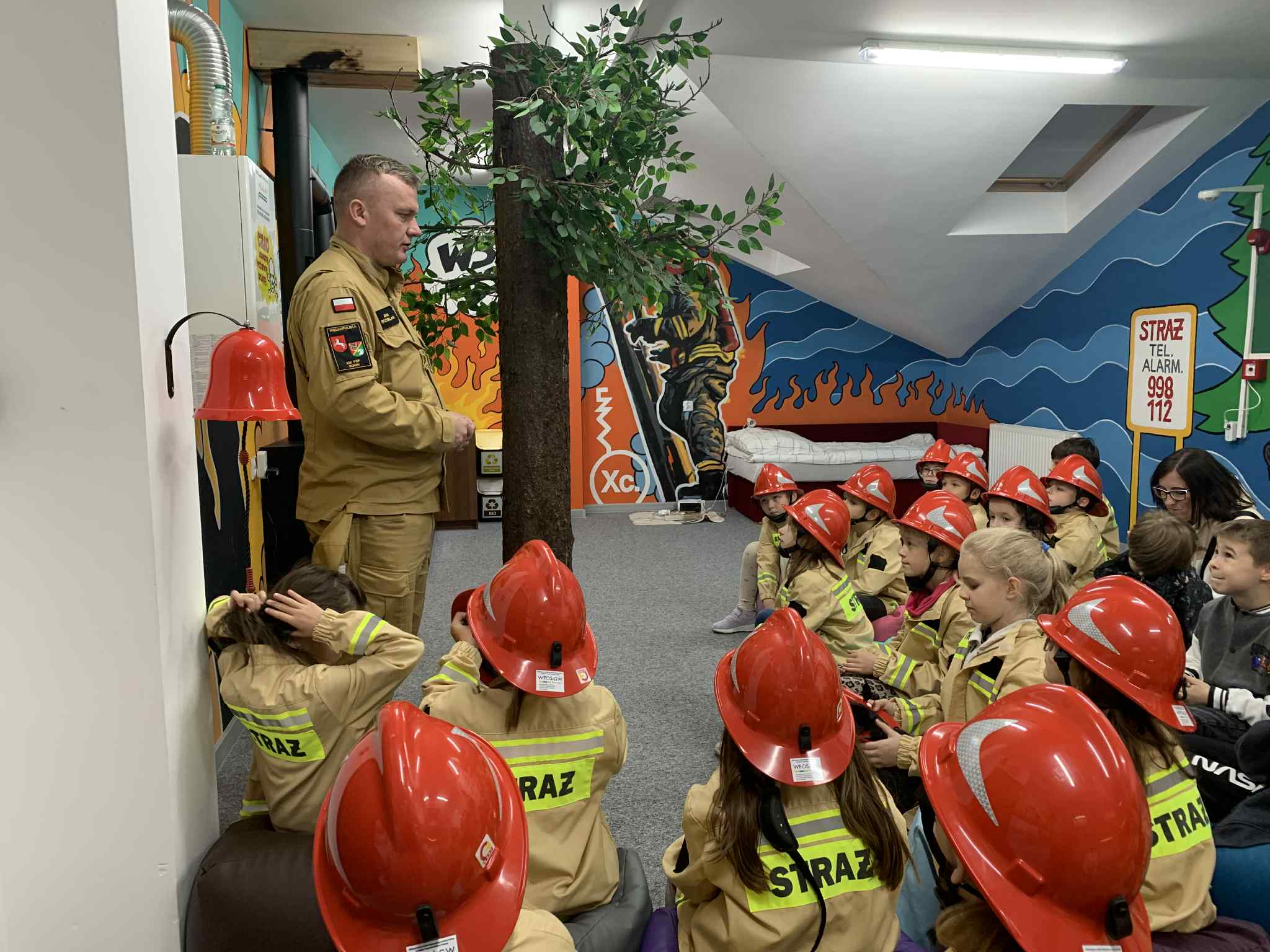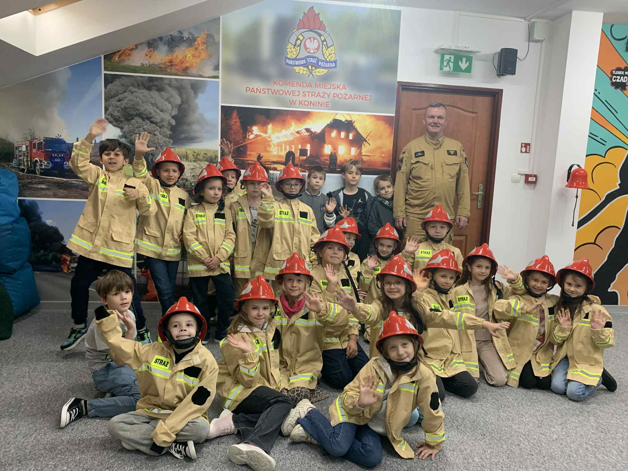 Klasa 2b w strażackiej sali edukacyjnej „Ognik”