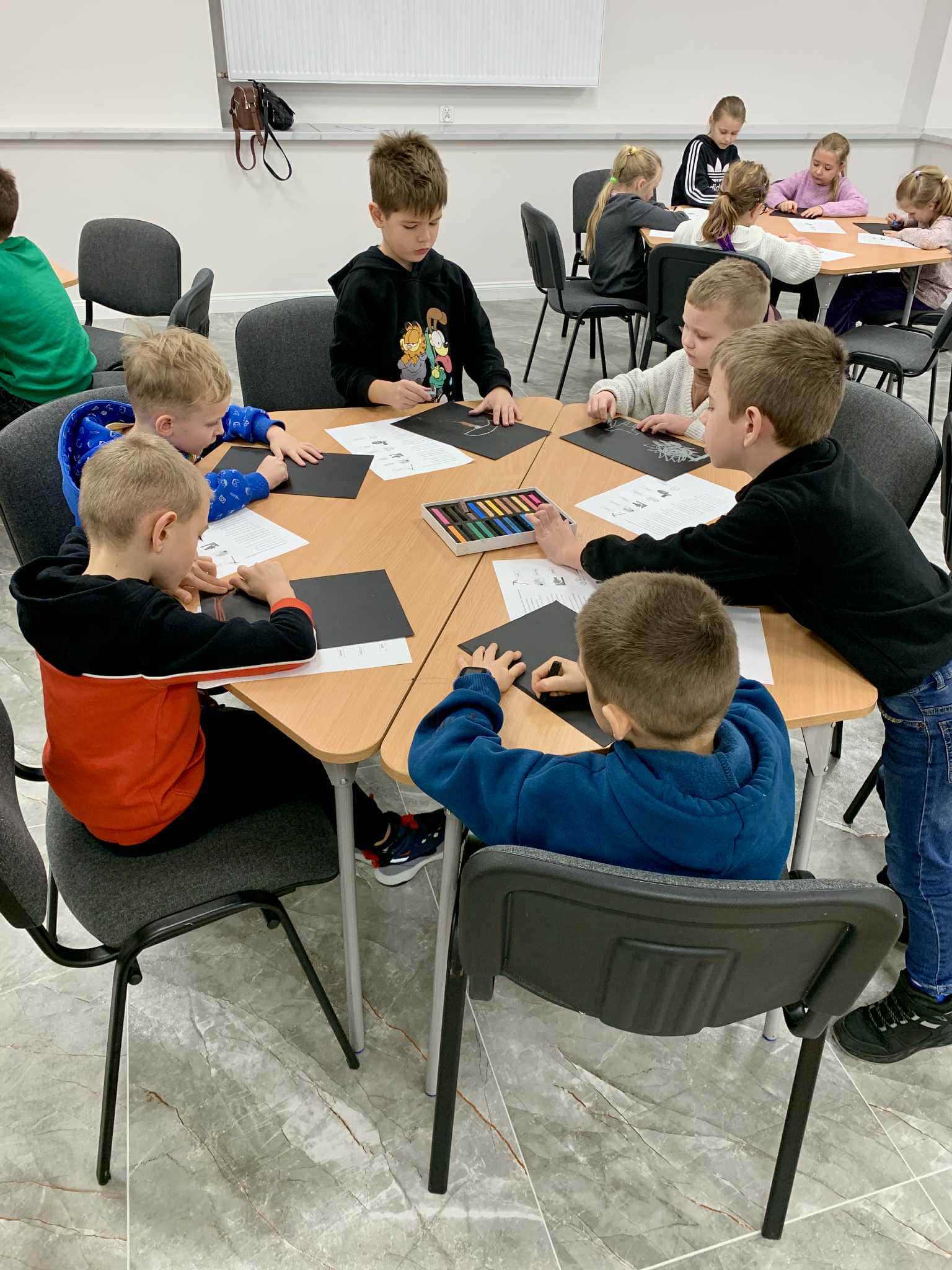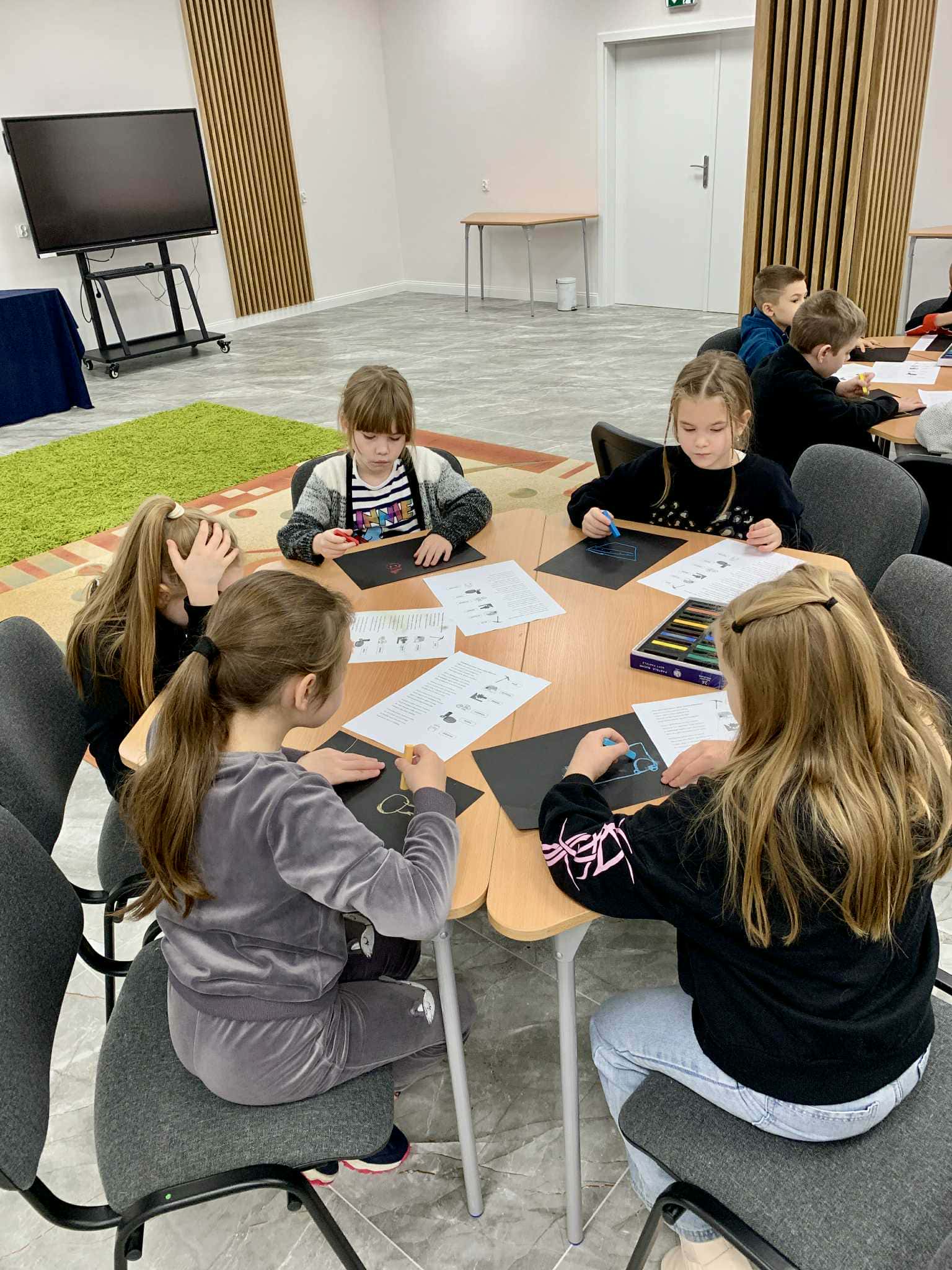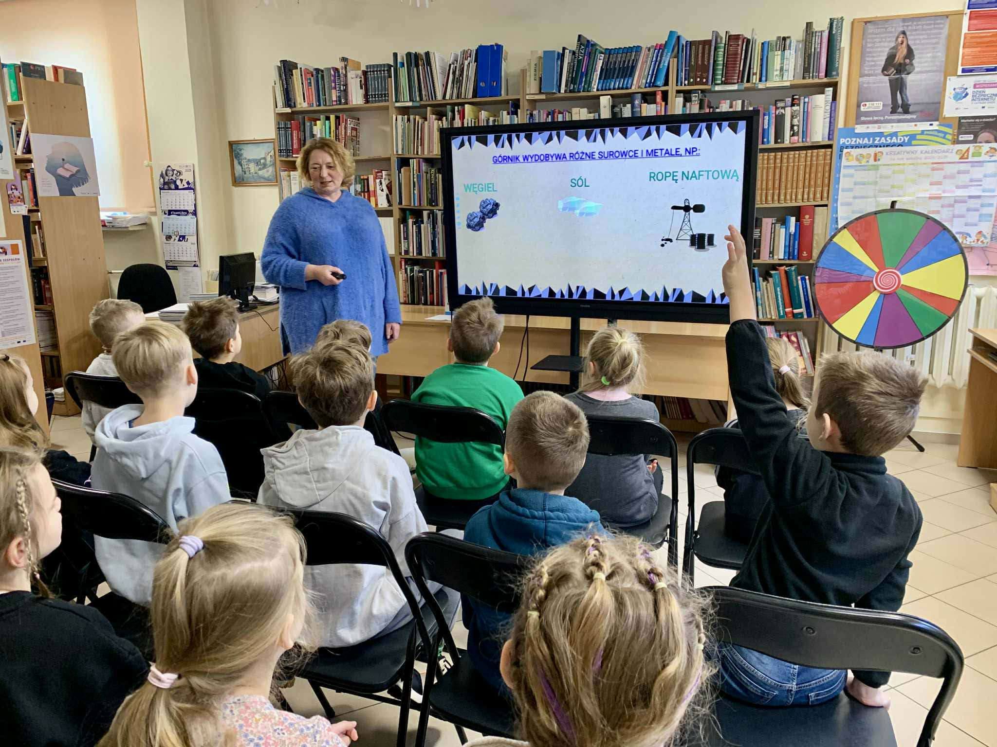W czwartek 27.11.2025 r. uczniowie klasy Ib odwiedzili Bibliotekę Pedagogiczną w Koninie, gdzie brali udział w zajęciach w ramach projektu edukacyjnego "W świecie zawodów". Uczniowie poznali specyfikację zawodu górnika, smolarza, zduna, kominiarza. Rozwiązywali zadania logiczne z wykorzystaniem tablicy interaktywne oraz ilustrowali treść wiersza "Praca górniczej rodziny".