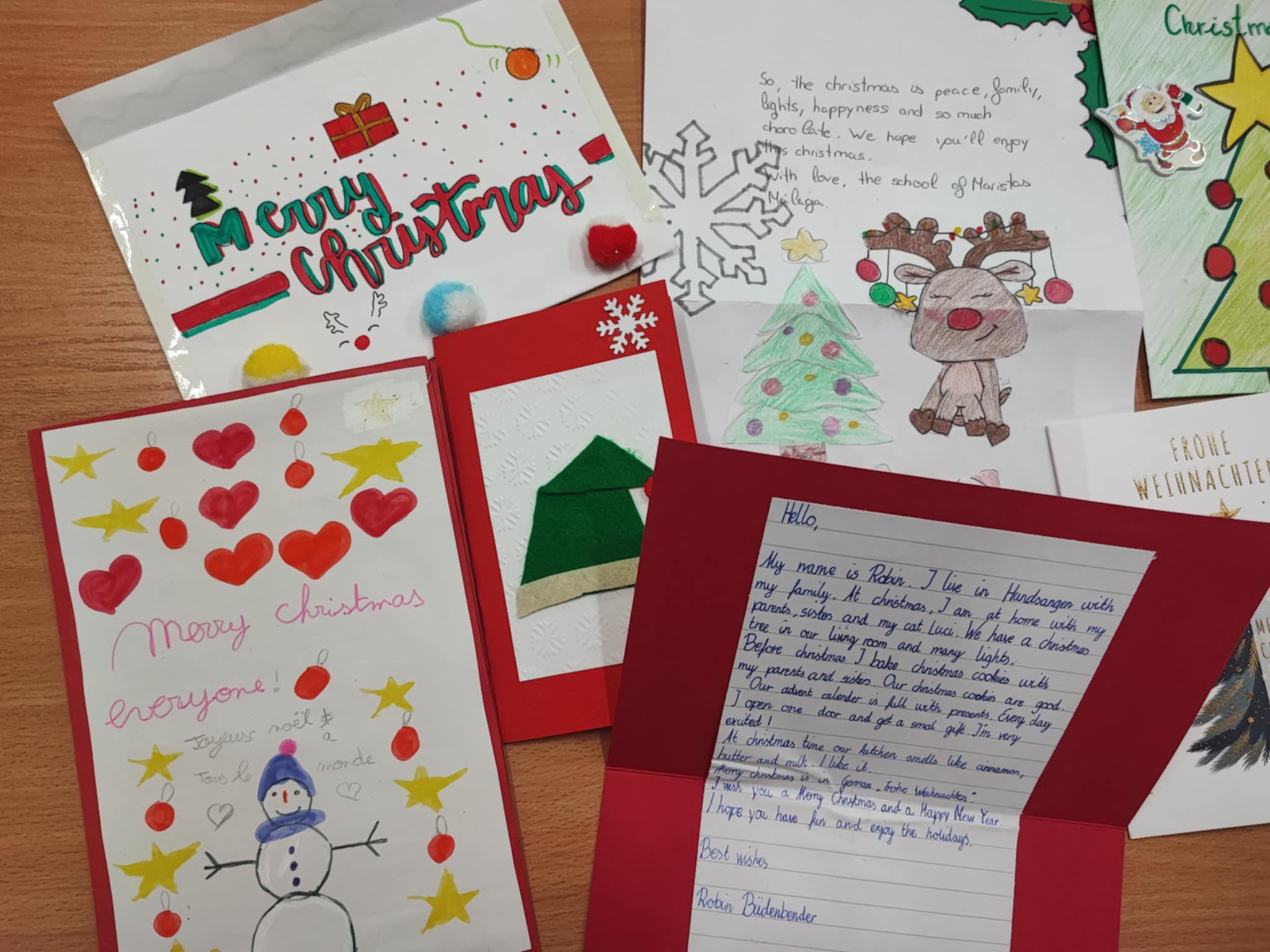 W okresie przedświątecznym uczniowie biorą udział w wyjątkowej wymianie kartek bożonarodzeniowych z rówieśnikami z różnych krajów Europy, między innymi z Niemiec, Hiszpanii i Francji. Wysyłając własnoręcznie przygotowane kartki, dzieci poznają świąteczne tradycje innych narodów oraz uczą się otwartości i wzajemnego szacunku. Taka forma współpracy rozwija umiejętności językowe, kreatywność oraz poczucie wspólnoty europejskiej. Wymiana kartek sprawia uczniom wiele radości i pokazuje, że mimo różnic kulturowych święta łączą ludzi w całej Europie.