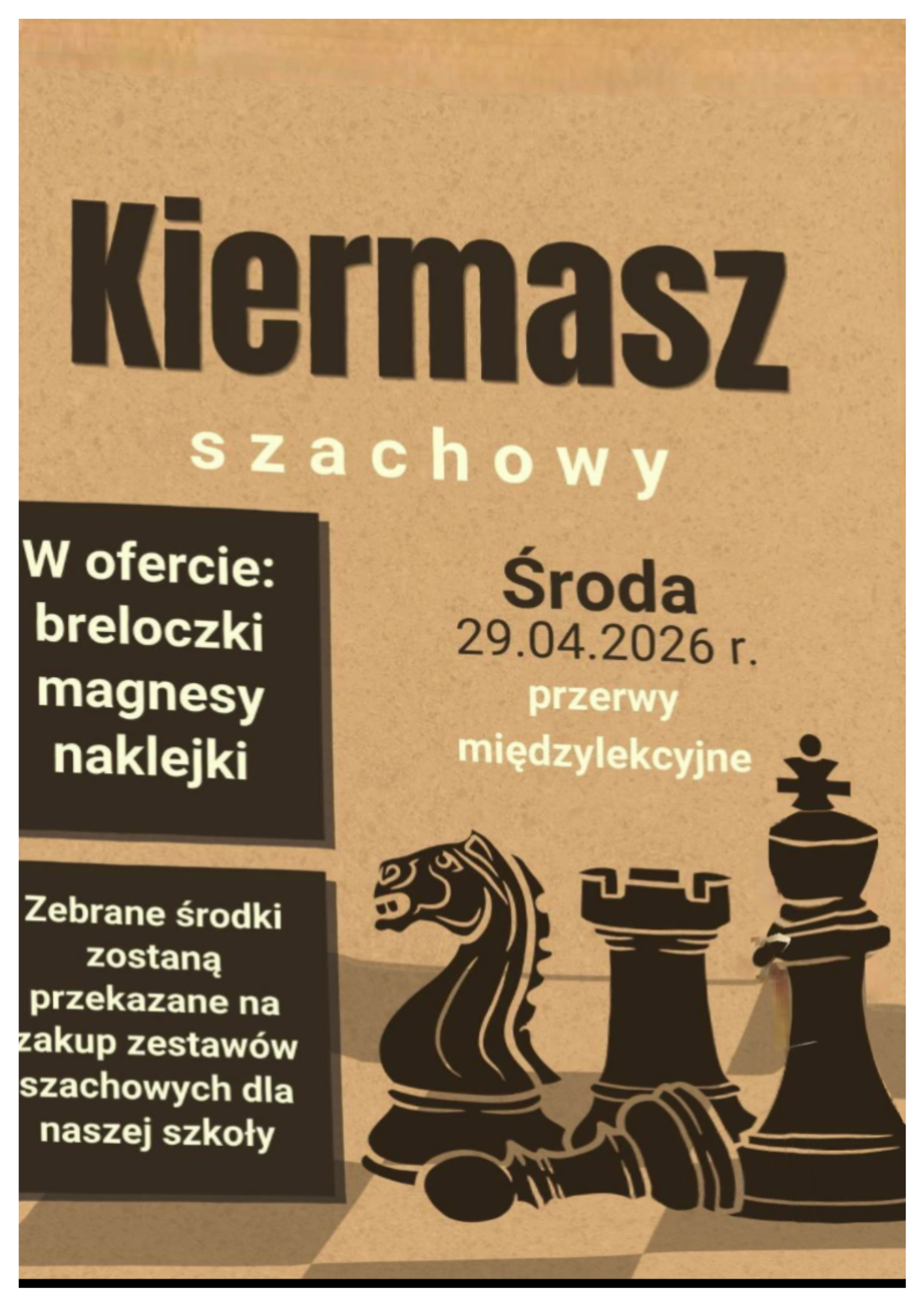 Już 29 kwietnia podczas przerw międzylekcyjnych w naszej szkole odbędzie się wyjątkowy kiermasz szachowy!